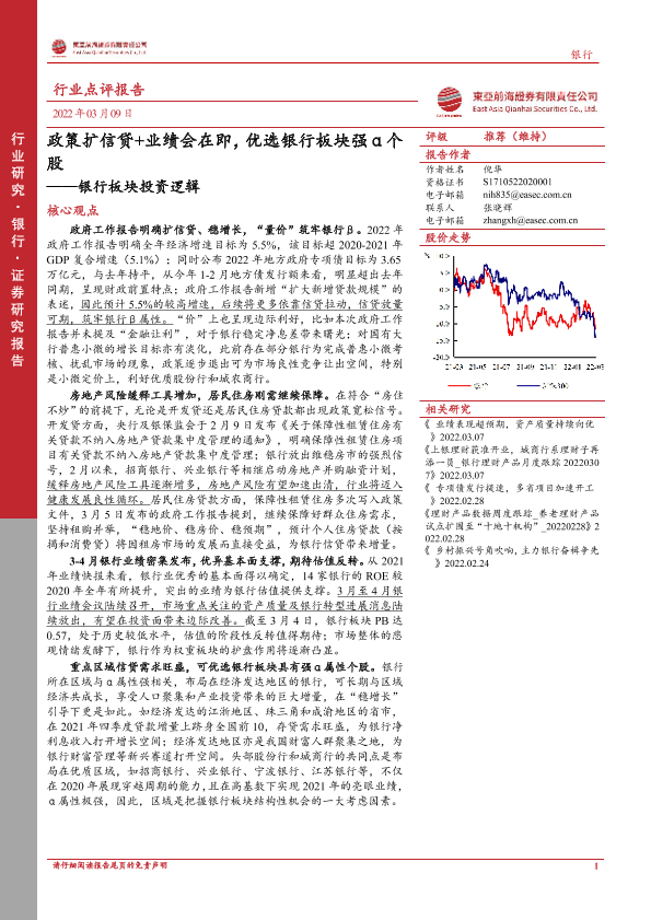 【东亚前海证券】【20220309】银行板块投资逻辑:政策扩信贷+业绩会在即,优选银行板块强α个股-6页