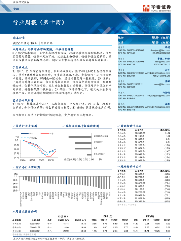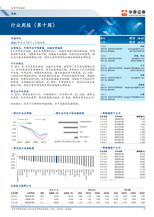 【华泰证券】【20220313】金融行业周报(第十周)-26页