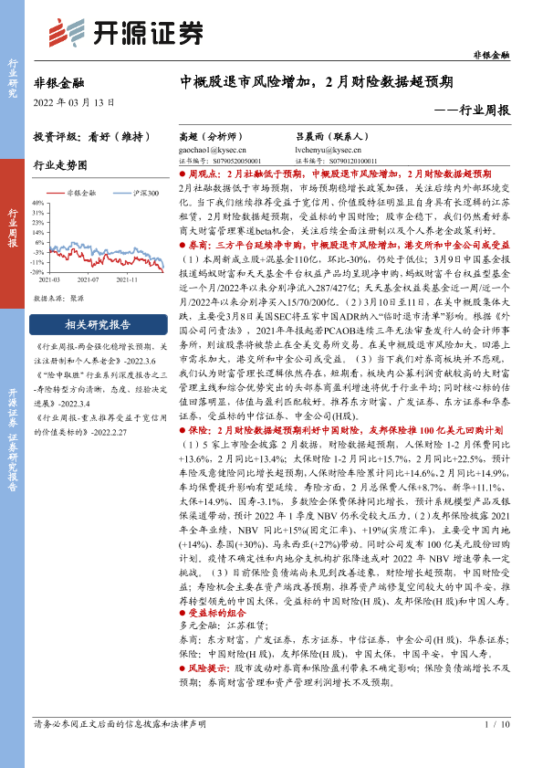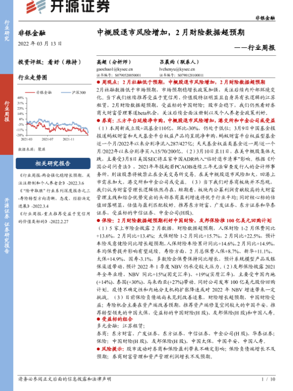 【开源证券】【20220313】非银金融行业周报:中概股退市风险增加,2月财险数据超预期-10页