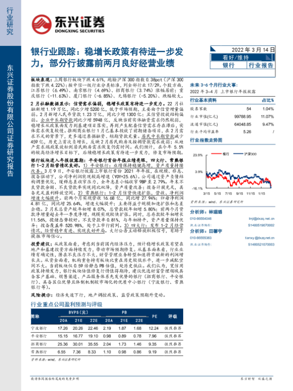 【东兴证券】【20220314】银行业跟踪:稳增长政策有待进一步发力,部分行披露前两月良好经营业绩-9页