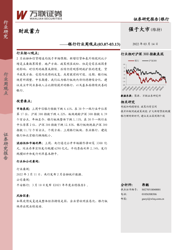 市场表现 财政政策 货币政策 金融数据 银行行业