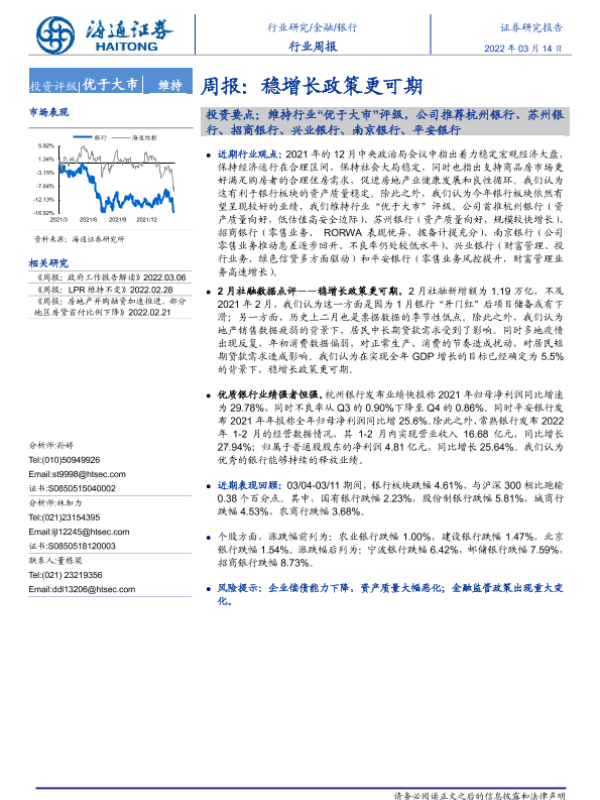 【海通证券】【20220314】银行周报:稳增长政策更可期-8页
