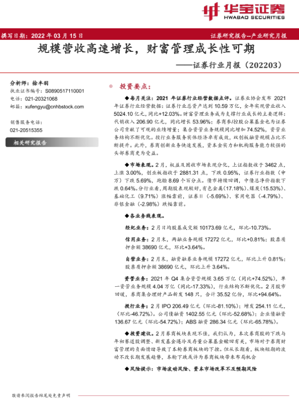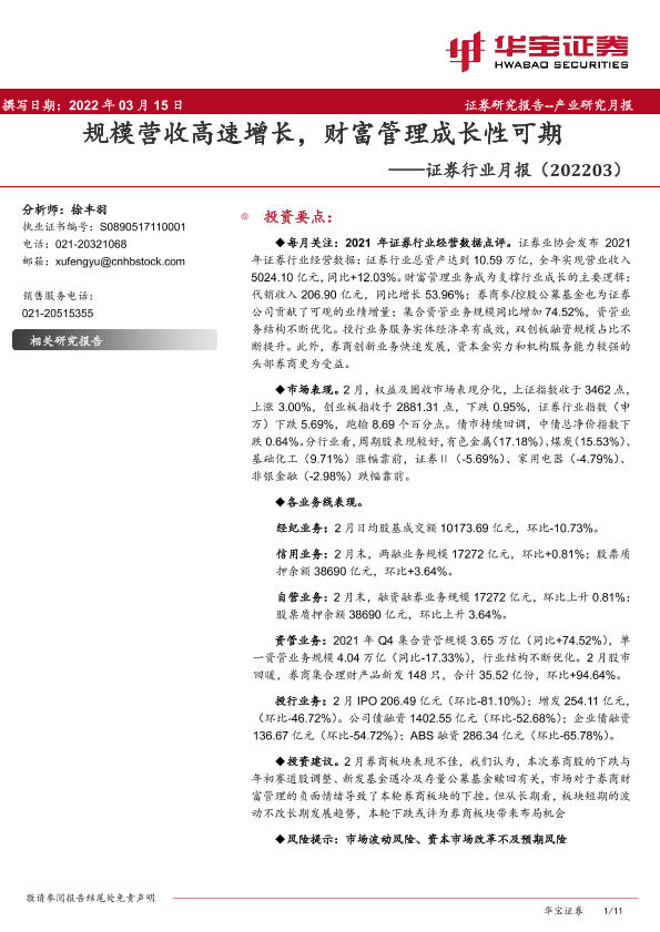 【华宝证券】【202203】证券行业月报:规模营收高速增长,财富管理成长性可期-11页