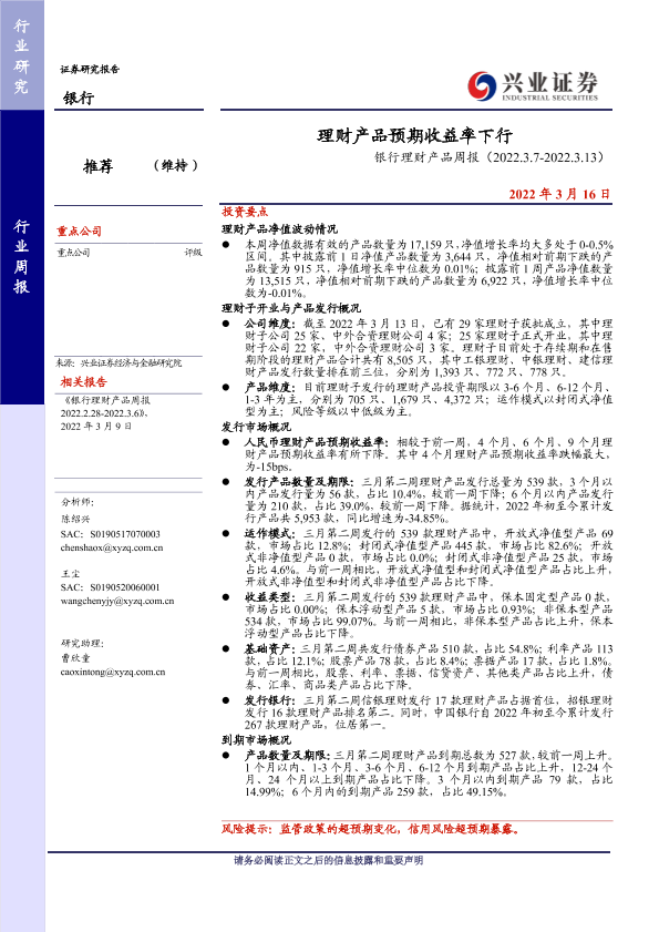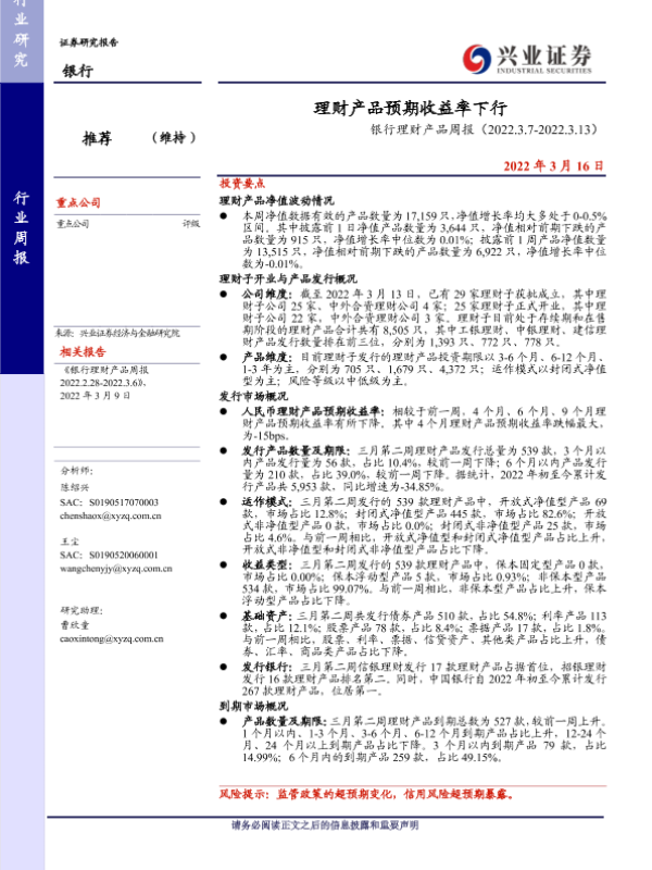 【兴业证券】【20220316】理财产品预期收益率下行-20页