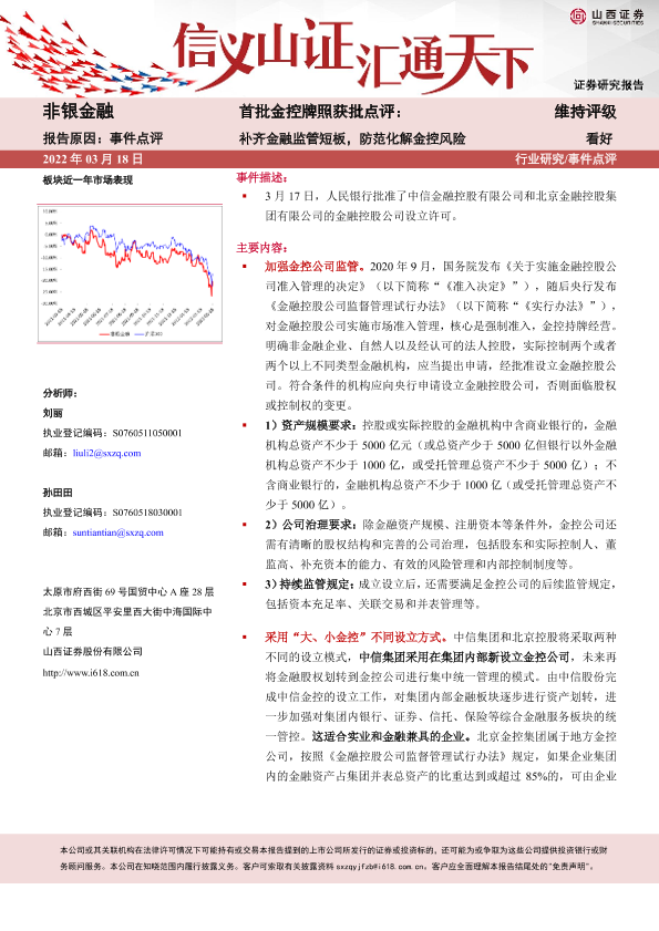 【山西证券】【20220318】非银金融首批金控牌照获批点评:补齐金融监管短板,防范化解金控风险-4页