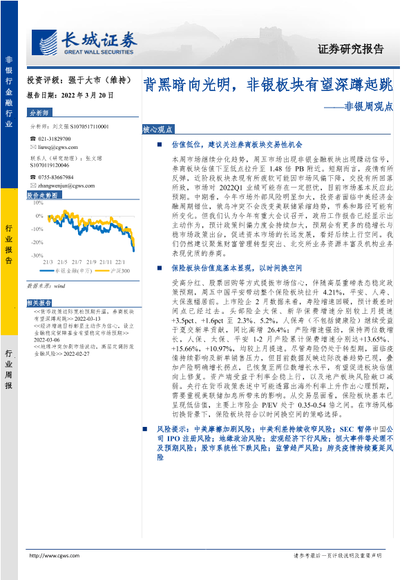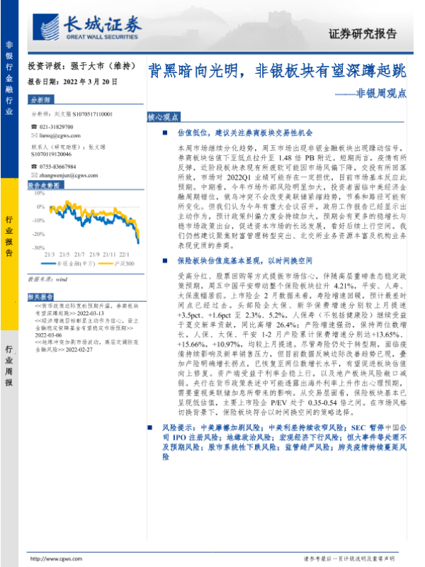 【长城证券】【20220320】非银周观点:背黑暗向光明,非银板块有望深蹲起跳-32页