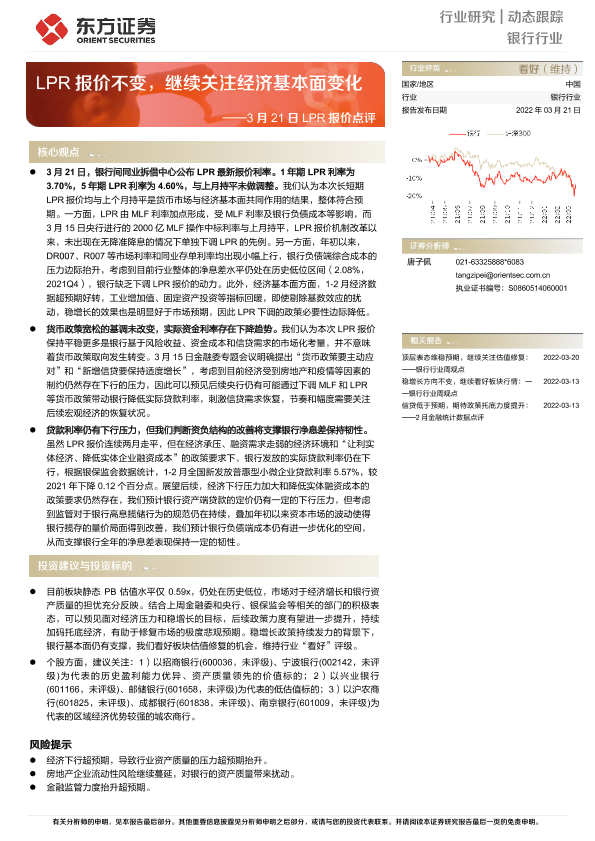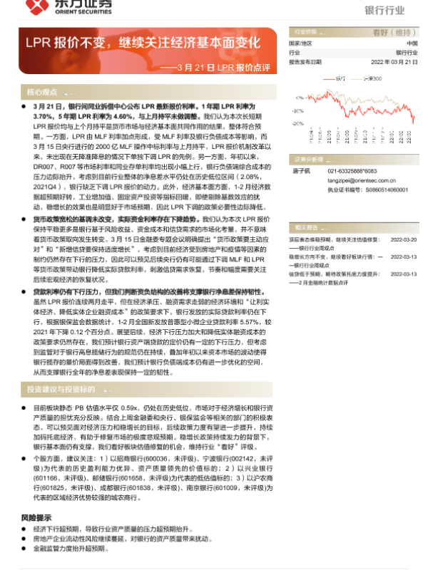 【东方证券】【20220321】3月21日LPR报价点评:LPR报价不变,继续关注经济基本面变化-3页
