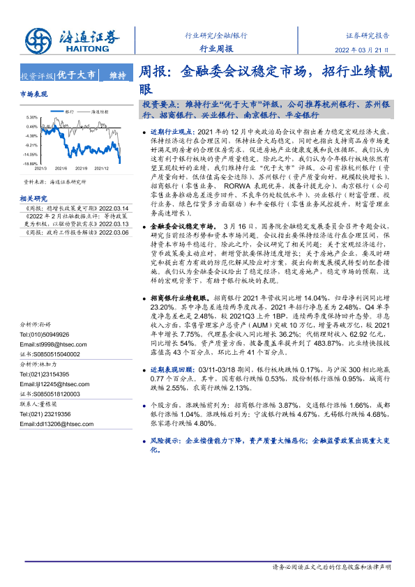 【海通证券】【20220321】银行周报:金融委会议稳定市场,招行业绩靓眼-8页