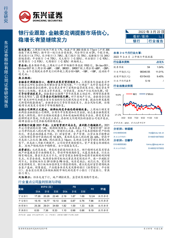 【东兴证券】【20220322】银行业跟踪:金融委定调提振市场信心,稳增长有望继续发力-9页