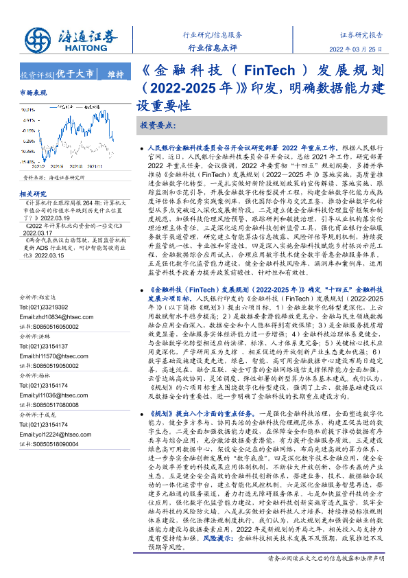 【海通证券】【20220325】金融科技(FinTech)发展规划(2022-2025年)印发,明确数据能力建设重要性-2页