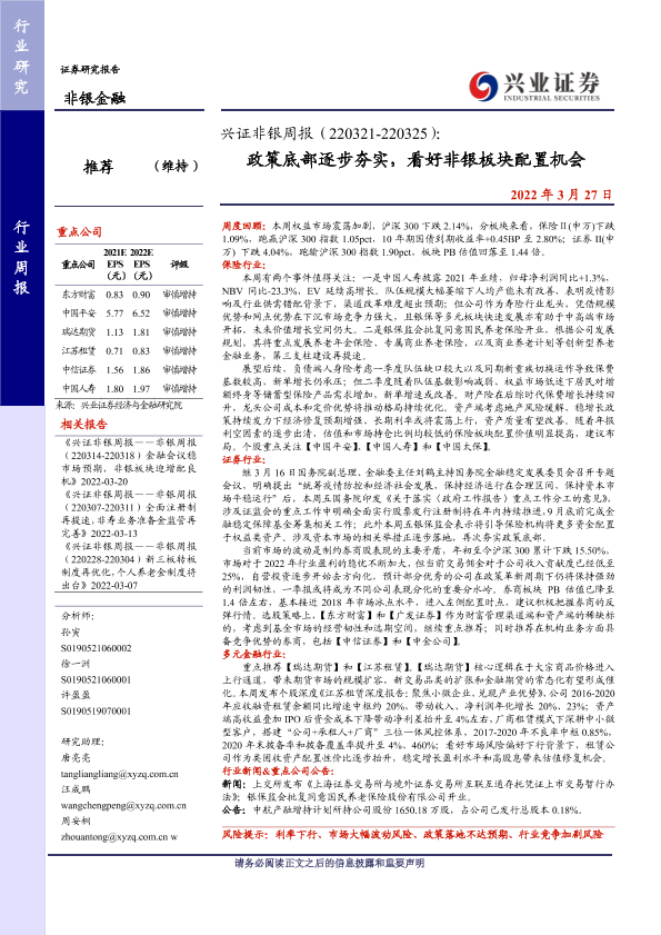 【兴业证券】【20220327】兴证非银周报:政策底部逐步夯实,看好非银板块配置机会-18页