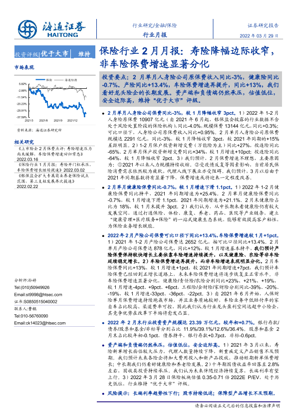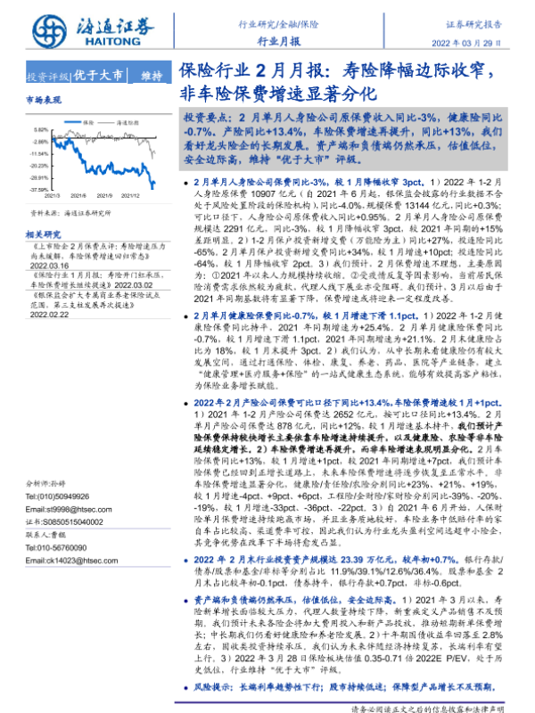 【海通证券】【20220329】保险行业2月月报:寿险降幅边际收窄,非车险保费增速显著分化-6页