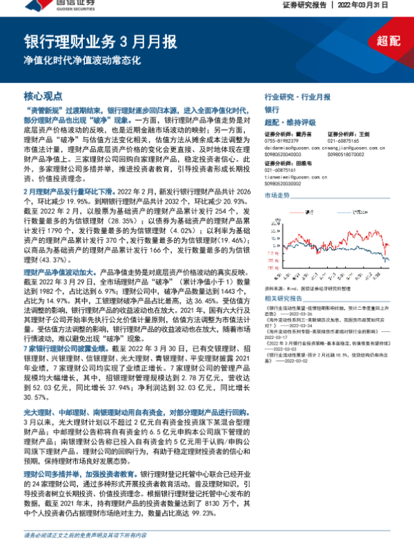 【国信证券】【20220331】银行理财业务3月月报:净值化时代净值波动常态化-10页
