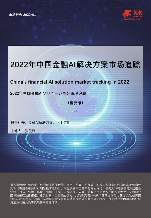 【头豹研究院】【20220329】2022年中国金融AI解决方案市场追踪-33页