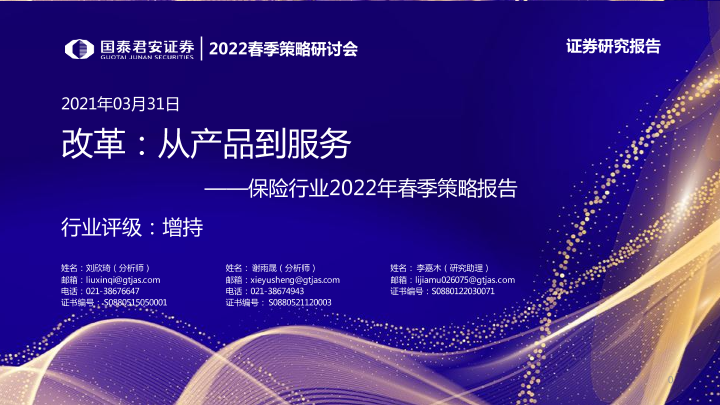 【国泰君安证券】【20220331】保险行业2022年春季策略报告:改革:从产品到服务-28页
