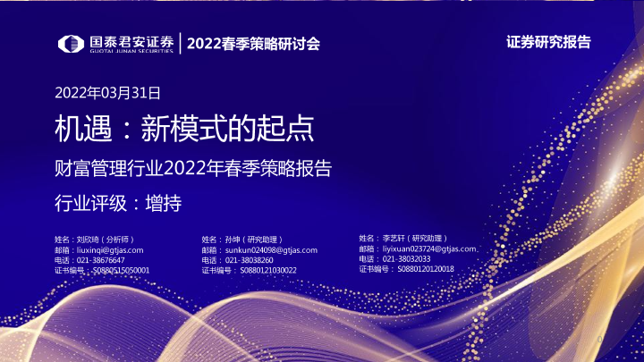 【国泰君安证券】【20220331】财富管理行业2022年春季策略报告:机遇:新模式的起点-41页