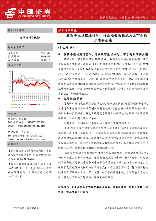 【中邮证券】【20220401】券商年报披露进行时,行业经营数据成为上市券商业绩安全垫-10页