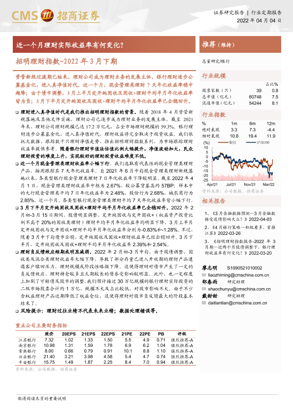 【海通证券】【20220404】招明理财指数-2022年3月下期:近一个月理财实际收益率有何变化?-3页