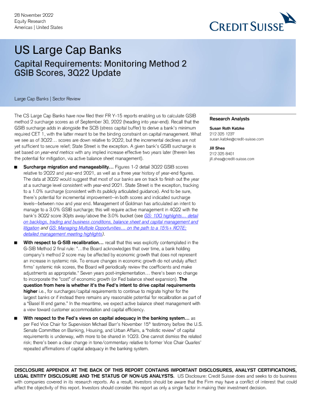 【Credit Suisse】【20221128】US Large Cap Banks Capital Requirements and GSIB Scores Update-10页