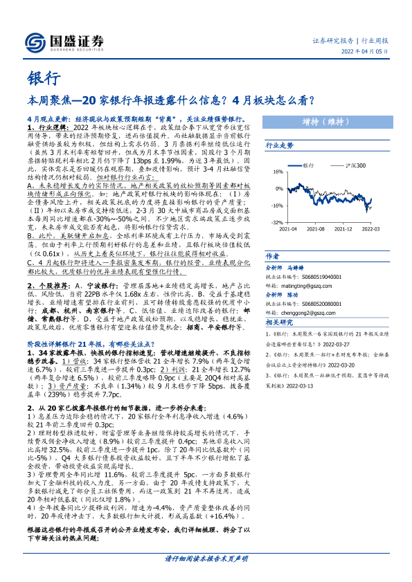 【国盛证券】【20220405】银行本周聚焦:20家银行年报透露什么信息?4月板块怎么看?-24页