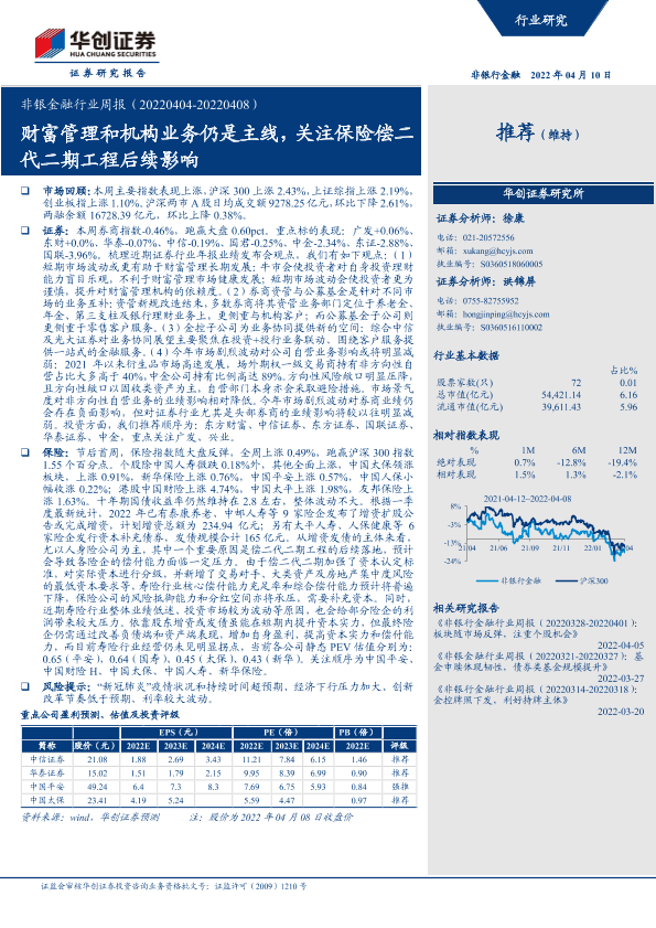 【华创证券】【20220410】非银金融行业周报:财富管理和机构业务仍是主线,关注保险偿二代二期工程后续影响-15页