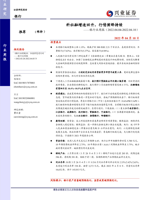 【兴业证券】【20220410】料社融增速回升,行情演绎持续-15页