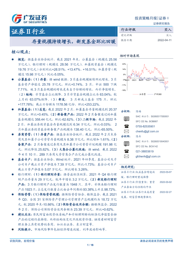 【广发证券】【20220411】证券Ⅱ行业投资策略月报:存量规模持续增长,新发基金环比回暖-18页