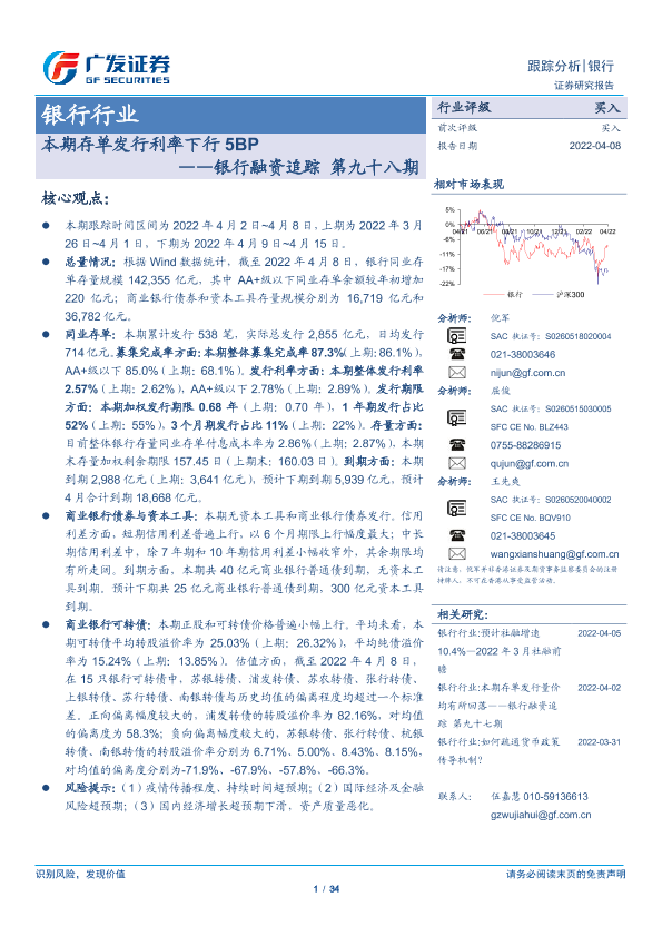 【广发证券】【20220411】银行融资追踪第九十八期:本期存单发行利率下行5BP-34页