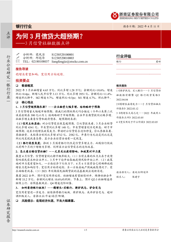 【浙商证券】【20220411】3月信贷社融数据点评:为何3月信贷大超预期?-5页
