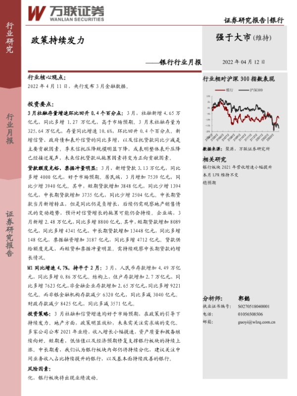 【万联证券】【20220412】银行行业月报:政策持续发力-6页