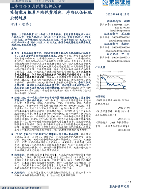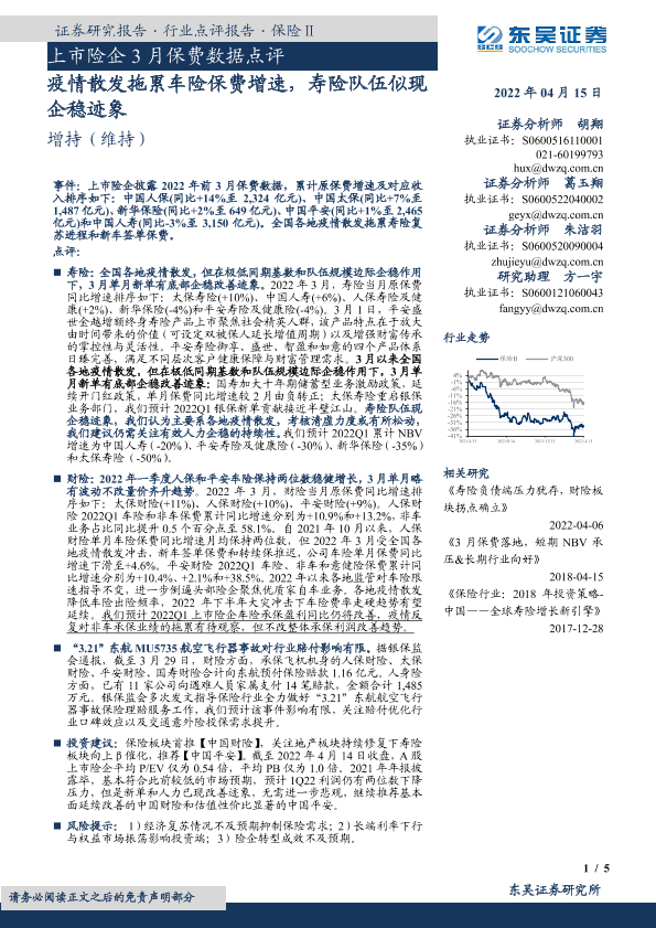 【东吴证券】【20220415】上市险企3月保费数据点评-5页