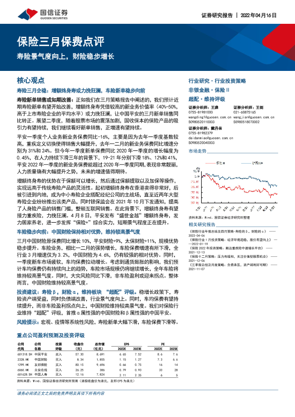 【国信证券】【20220416】保险三月保费点评:寿险景气度向上,财险稳步增长-4页