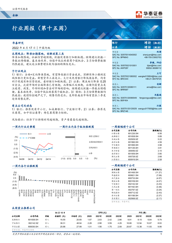 【华泰证券】【20220417】金融行业周报(第十五周)-27页