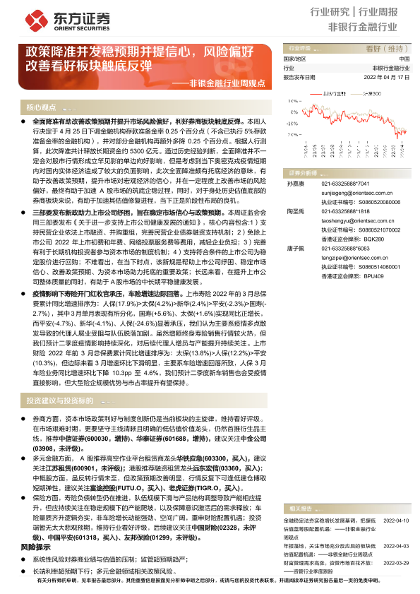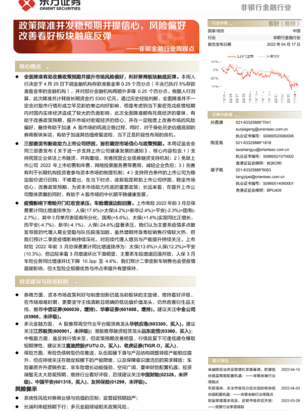 【东方证券】【20220417】非银金融行业周观点:政策降准并发稳预期并提信心,风险偏好改善看好板块触底反弹-13页