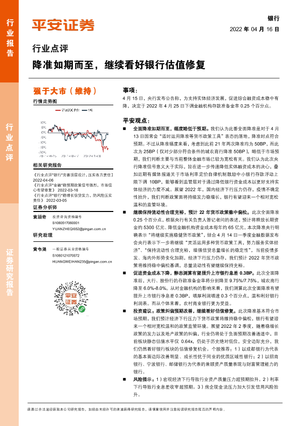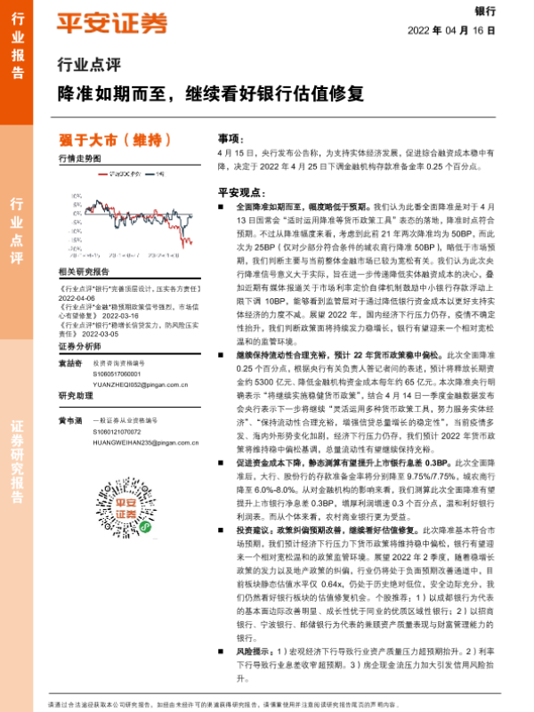 【平安证券】【20220416】降准如期而至,继续看好银行估值修复-3页