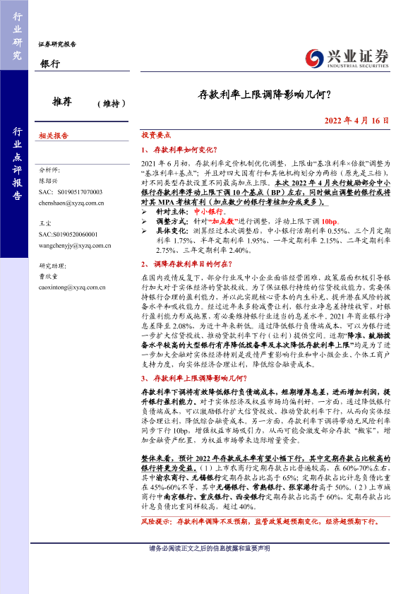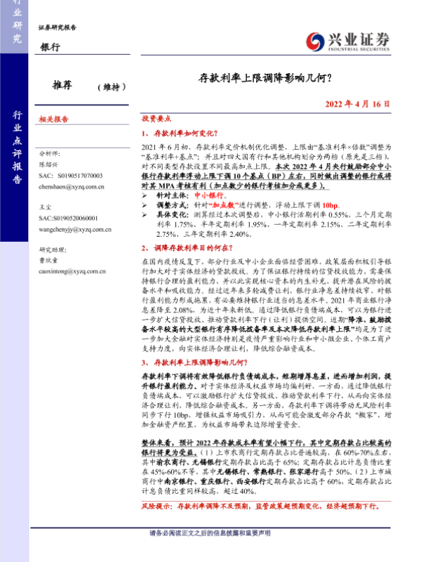 【兴业证券】【20220416】银行行业点评报告:存款利率上限调降影响几何?-6页