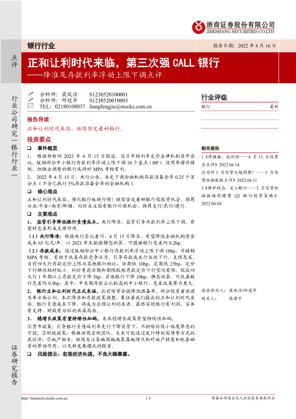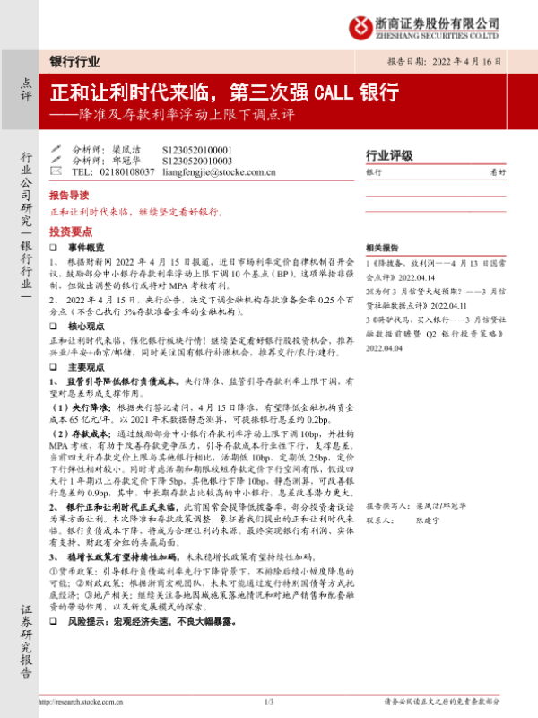 【浙商证券】【20220416】降准及存款利率浮动上限下调点评:正和让利时代来临,第三次强CALL银行-3页