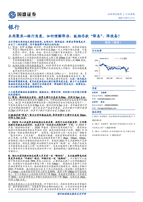 【国盛证券】【20220417】银行本周聚焦:银行角度,如何理解降准、鼓励存款“降息”、降拨备?-15页