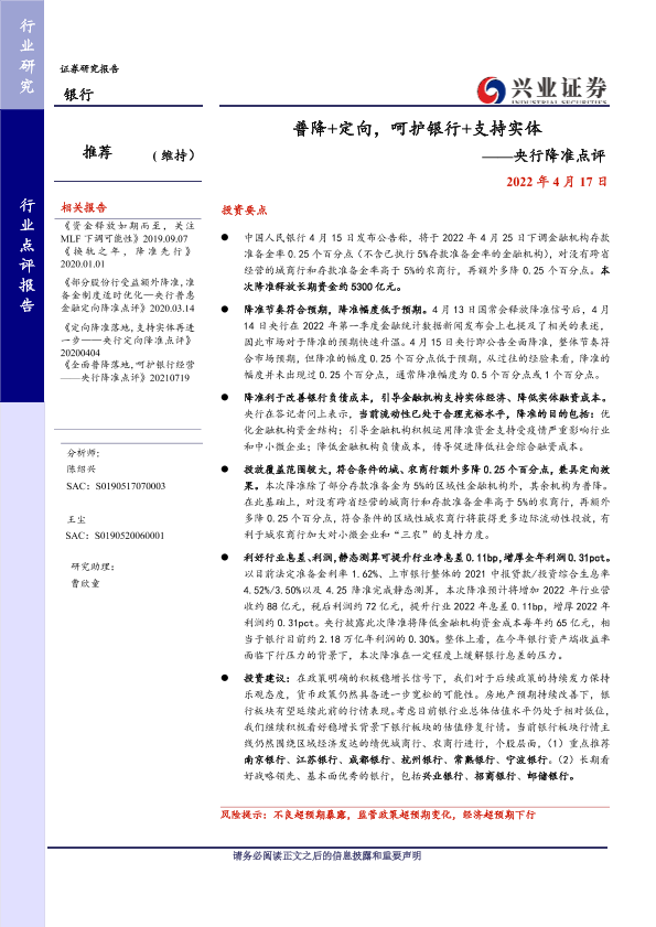 【兴业证券】【20220417】普降+定向,呵护银行+支持实体——央行降准点评-5页