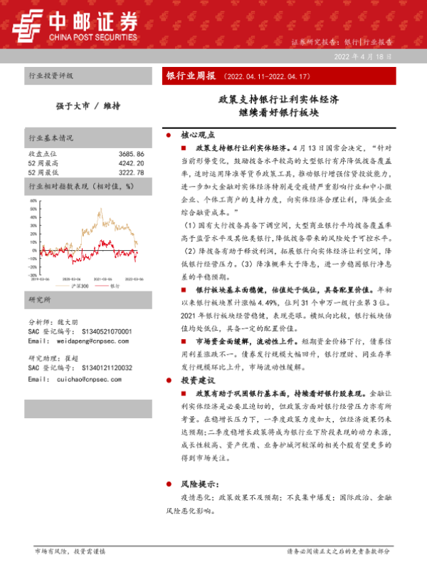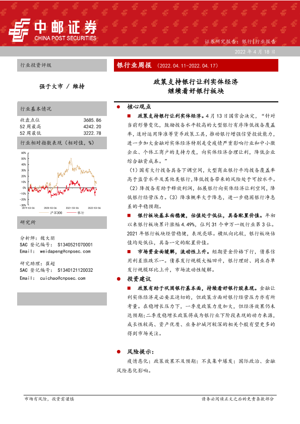 【中邮证券】【20220418】银行业周报:政策支持银行让利实体经济 继续看好银行板块-18页