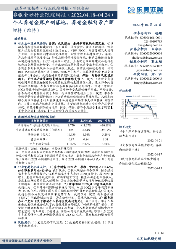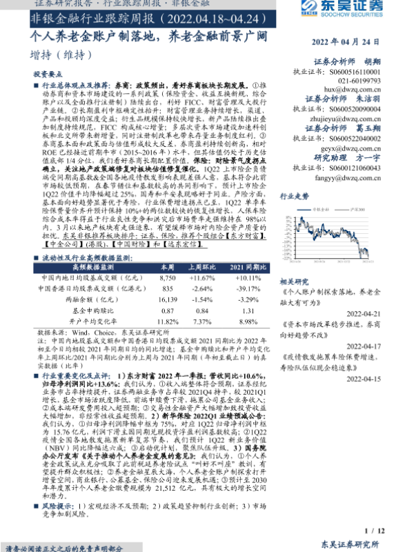 【东吴证券】【20220424】非银金融行业跟踪周报:个人养老金账户制落地,养老金融前景广阔-12页
