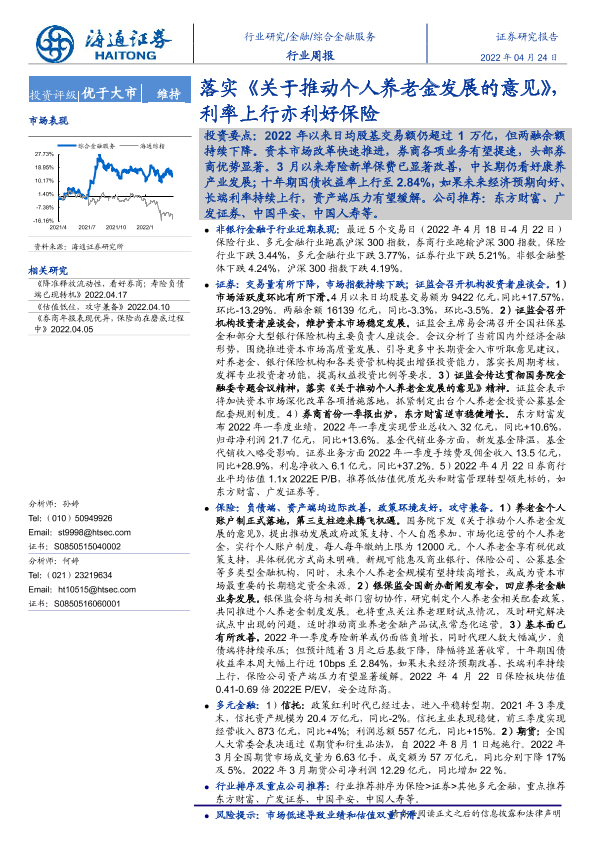 个人养老金 保险行业 利率上行 券商表现 综合金融服务