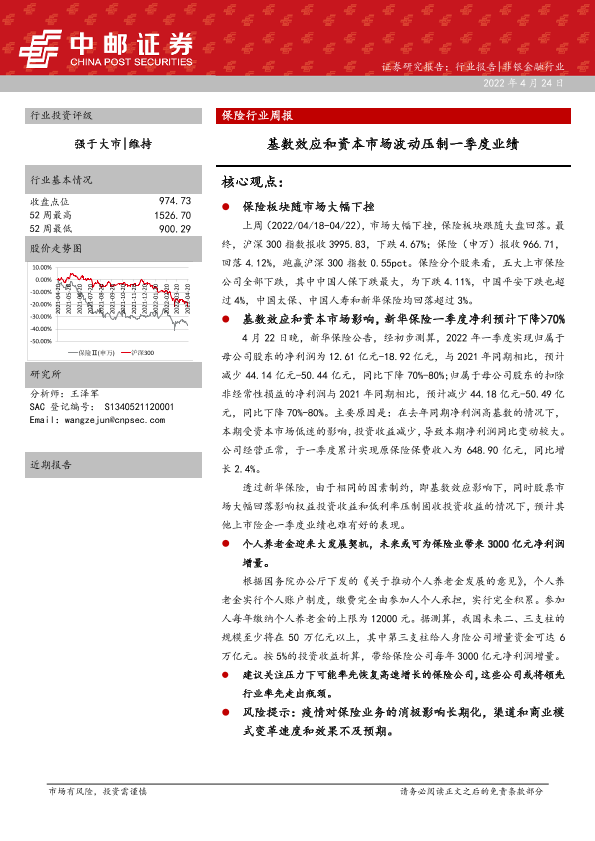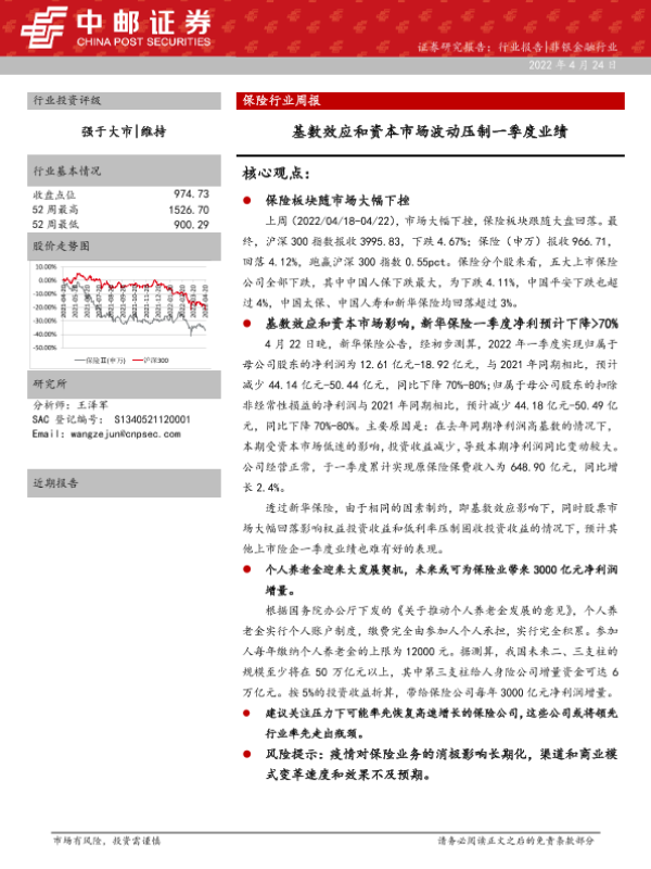 【中邮证券】【20220424】保险行业周报:基数效应和资本市场波动压制一季度业绩-17页