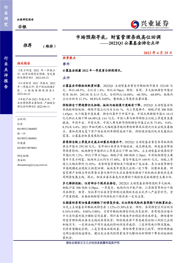 【兴业证券】【20220425】2022Q1公募基金持仓点评:市场预期寻底,财富管理条线高位回调-4页
