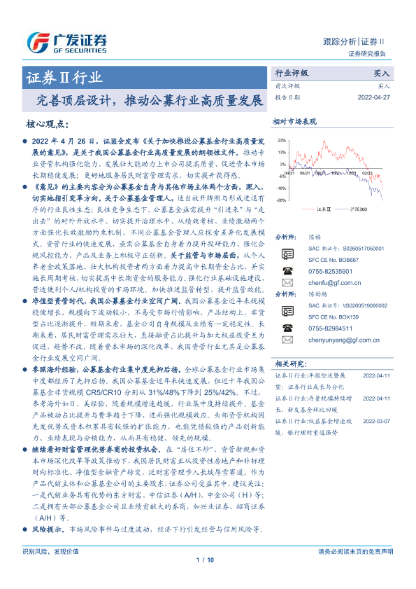 【广发证券】【20220427】完善顶层设计,推动公募行业高质量发展-10页