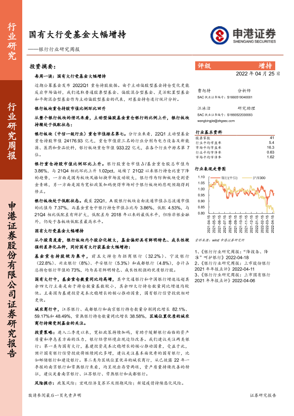 【申港证券】【20220425】银行行业研究周报:国有大行受基金大幅增持-11页