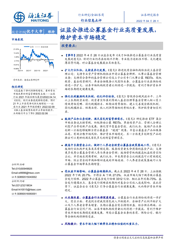 【海通证券】【20220428】券商行业信息点评:证监会推进公募基金行业高质量发展,维护资本市场稳定-3页