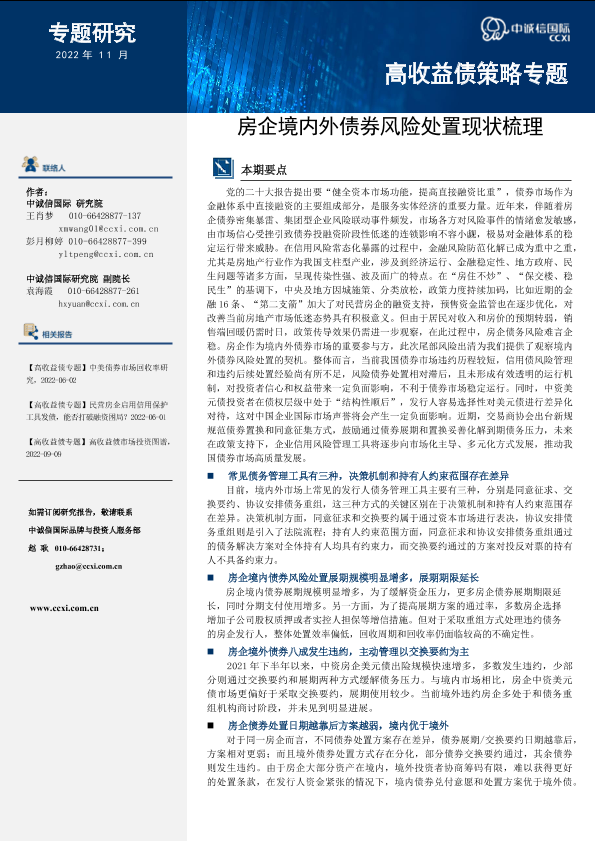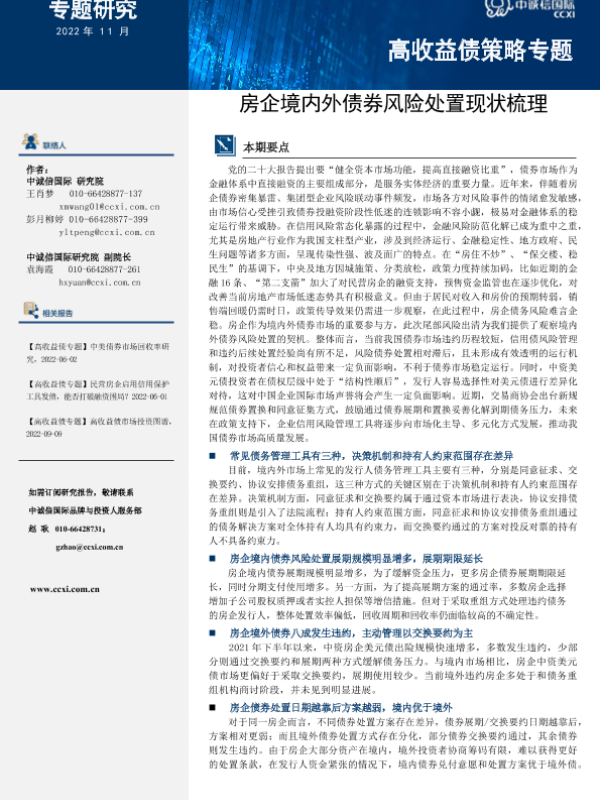 【中诚信国际】【202211】房企境内外债券风险处置现状梳理-15页