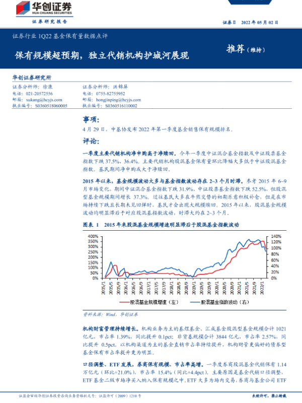【华创证券】【20220502】1Q22基金保有量数据点评:保有规模超预期,独立代销机构护城河展现-9页