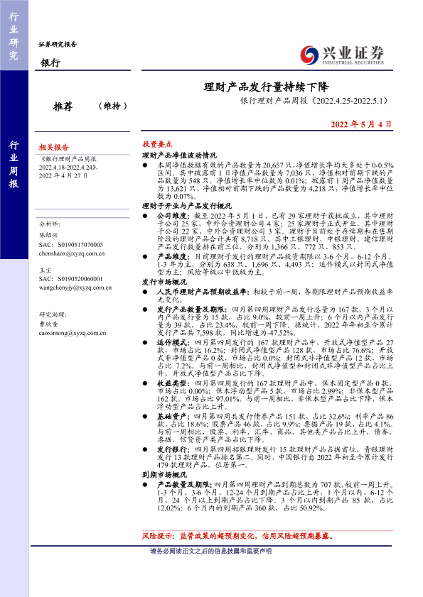 【兴业证券】【20220504】银行理财产品周报:理财产品发行量持续下降-20页